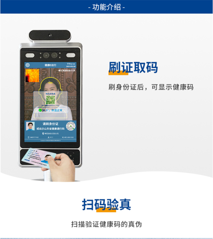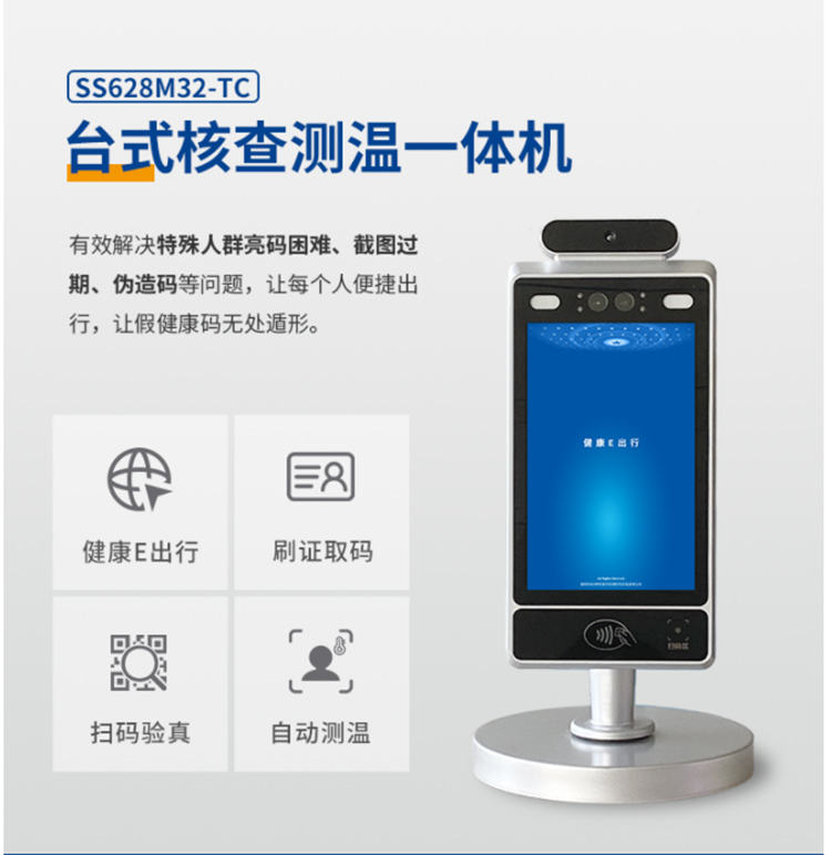 神思SS628M32測(cè)溫健康碼一體機(jī)可以同時(shí)識(shí)別健康碼,身份證,測(cè)量人體體溫,提高疫情防控的效率