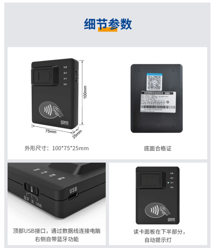 (*由于產(chǎn)品升級或其他原因,神思SS628-100Wm藍牙身份證讀卡器產(chǎn)品實際參數(shù)有可能變更,以實際產(chǎn)品為準。本文中的所有陳述、信息和建議也不構(gòu)成任何明示或暗示的擔(dān)保)