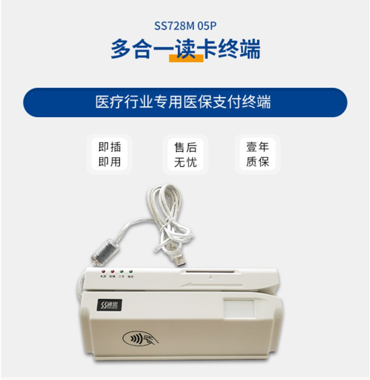 (*由于產(chǎn)品升級或其他原因,神思醫(yī)保卡讀卡器SS728-M05P產(chǎn)品實際參數(shù)有可能變更,以實際產(chǎn)品為準(zhǔn)。本文中的所有陳述、信息和建議也不構(gòu)成任何明示或暗示的擔(dān)保)